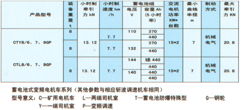 8T蓄电池式变频电机车,分安全型和特殊防爆型两种。8T 110V和8T 132V机车为一级转动结构,其特点是重心低,运行稳定。8T 140V机车采用锥,正齿轮二级转动,具有蓄电池容量高,车体钢板厚,耐冲击,刚度大等特点。
